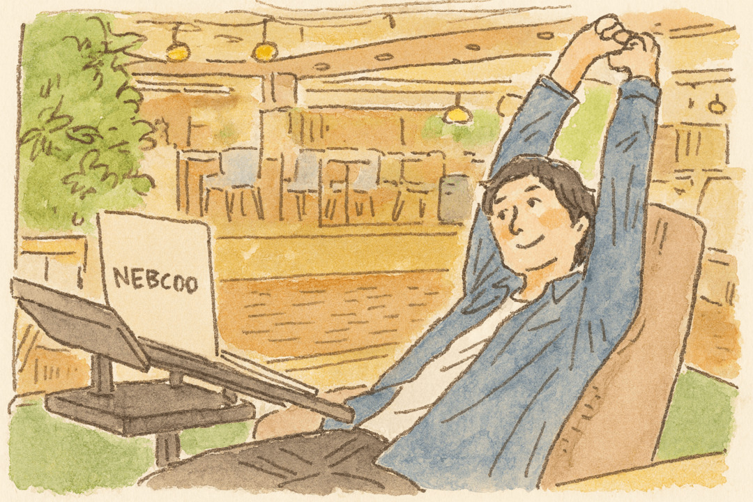 - 椅子の高さやモニター位置を見直し、足裏が床につく・目線がやや下向きになるように調整すると、姿勢が楽になります。